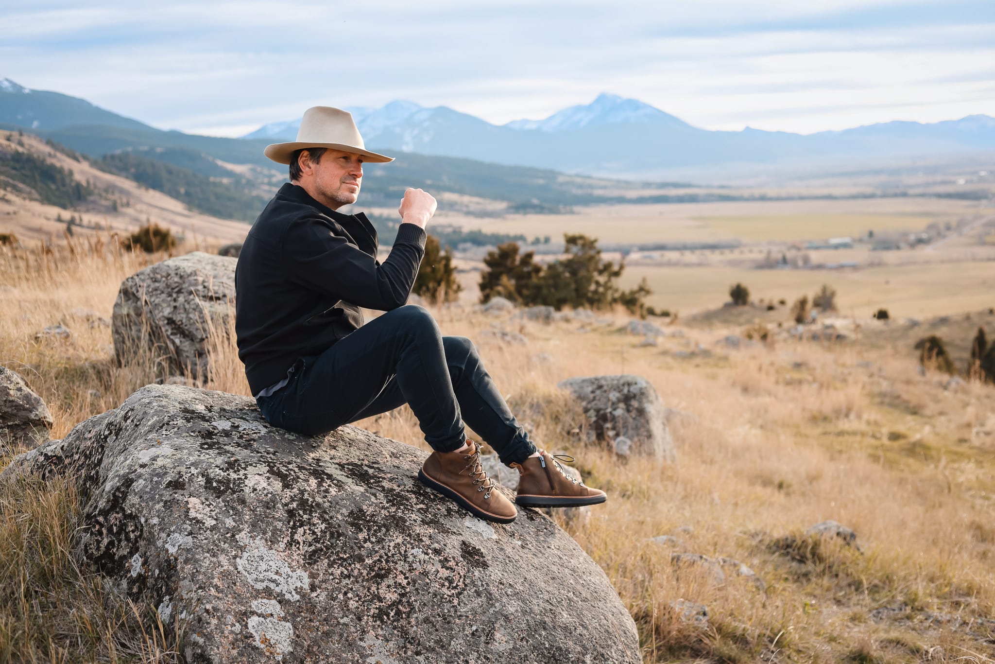 Brown leather walking boots for grounding and earthing